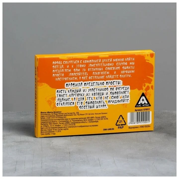 Купить игра для компании "фанты буханты" 20 карт от 100 руб. с доставкой до пункта выдачи в Кандалакше. Интернет магазин ДекаМаркет. Оплата при получении.