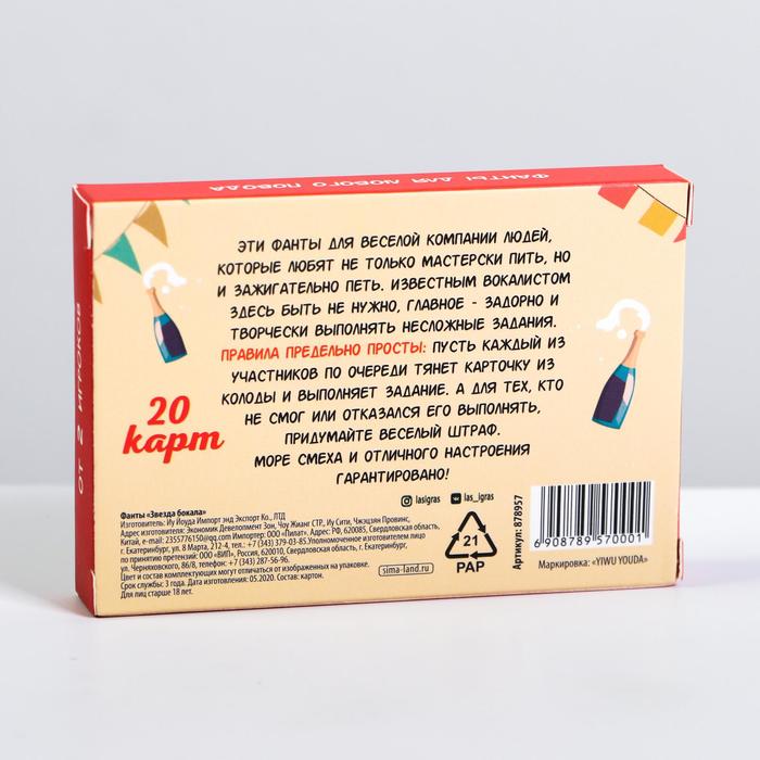 Купить игра для компании "фанты звезда бокала" 20 карт от 120 руб. с доставкой до пункта выдачи в Кандалакше. Интернет магазин ДекаМаркет. Оплата при получении.